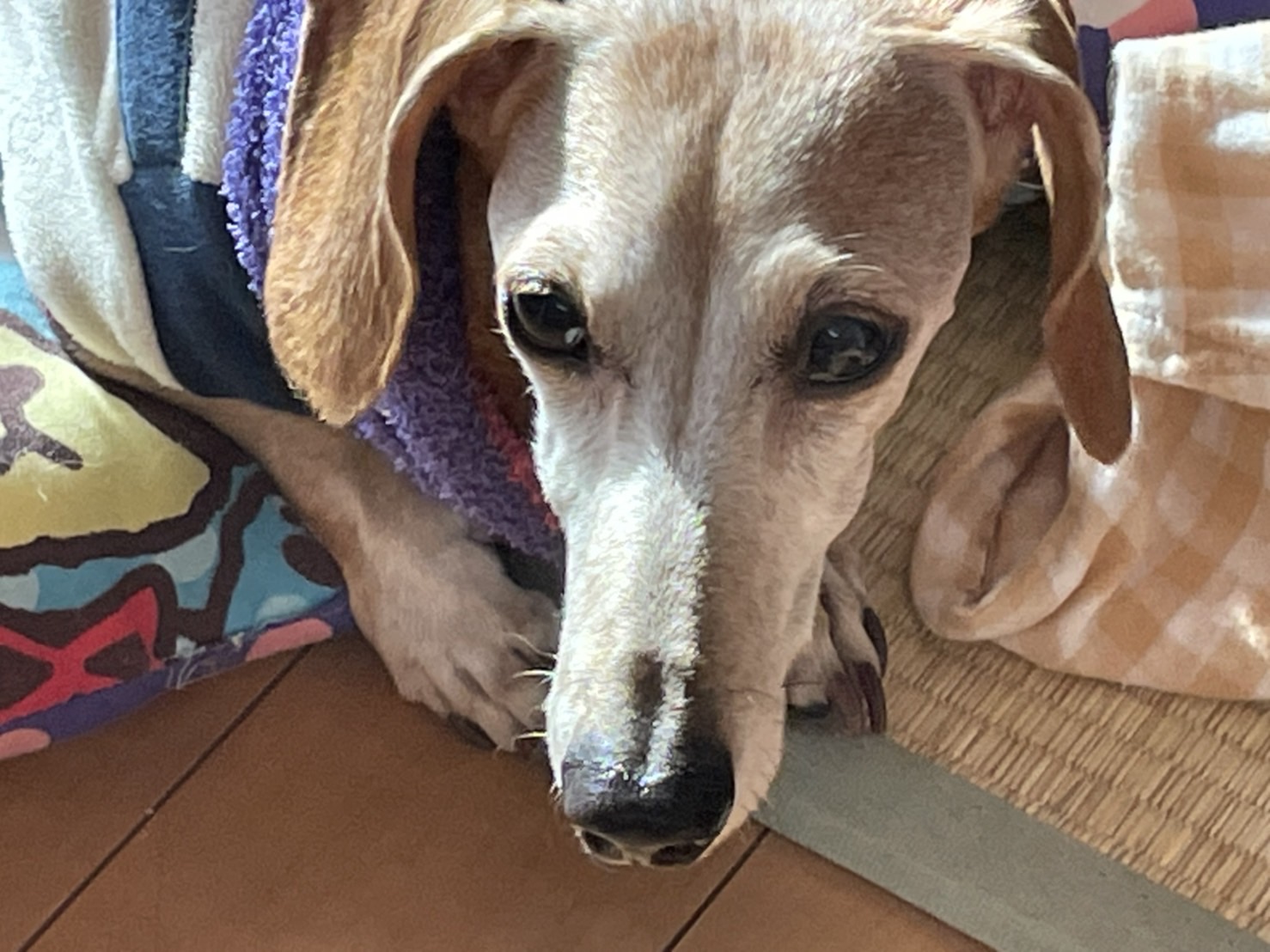 チャー君はすぐにストーブ前に帰りたい。