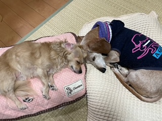 ココアちゃんの日記 2022-03-20 『平和』な・・・。 おはようございます。 3月20日(日)の朝です。 ちょっと風が強いのですが 快晴の日曜日です。 昨日の土曜日もご来店誠に ありがとうございます。 『平和』なお二人さんです。